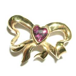 18ct yellow gold "bow" brooch set with rhodolite garnet.