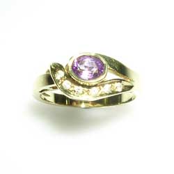 18ct yellow gold ring set with amethyst and diamonds.