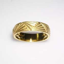 18ct yellow gold wedding band with combination matt and polish finish.